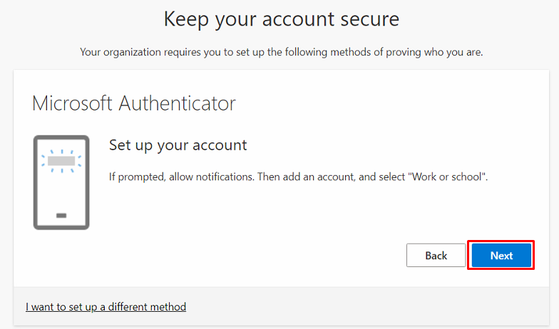 Choose mobile app and follow the instructions. In the App click Add word or school account and scan the QR code showed on the PC.