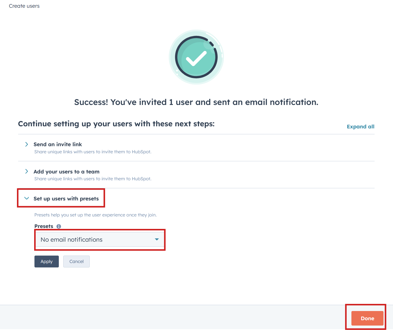 Set the preset "no email notifications" to ease up on the extensive emailing HubSpot does.