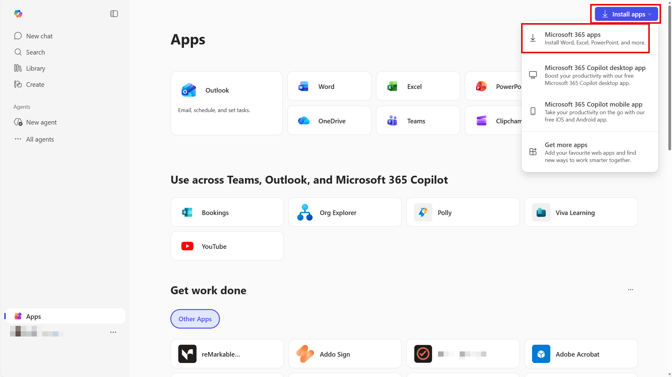 Then, Install and select Microsoft 365 apps.