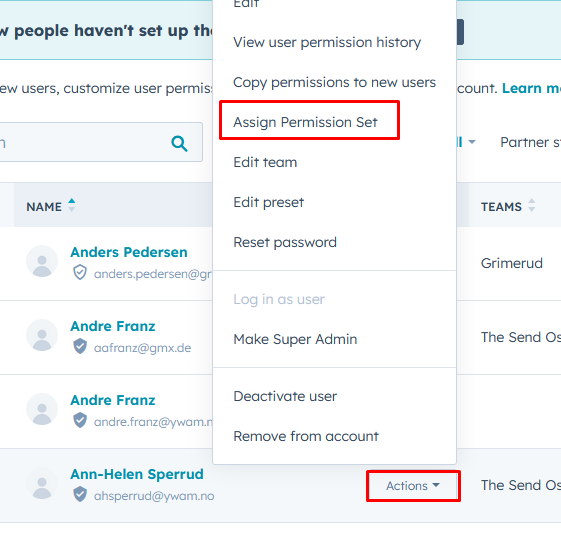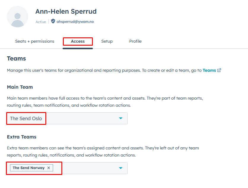 For The Send, select the main team where they work in the call center, and add "The Send Norway" as extra teams.