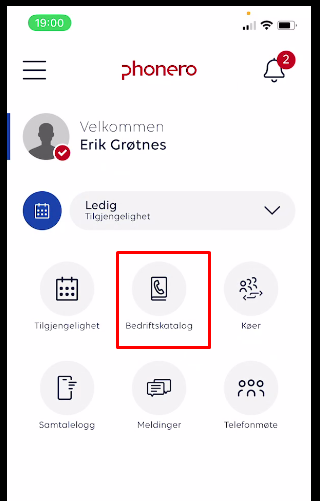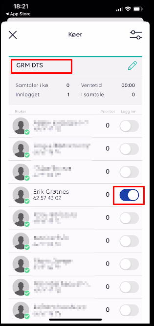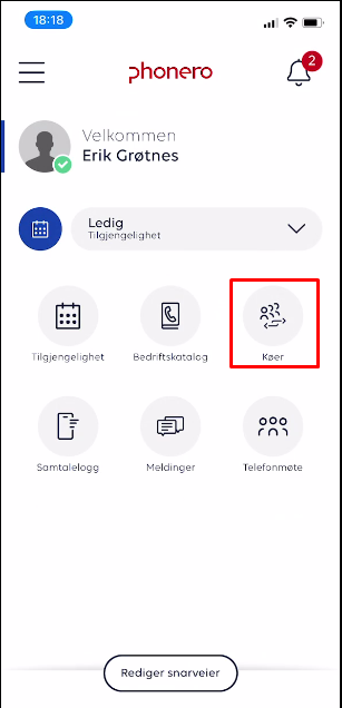To enter/exit the "call queue", use the Phonero Bedriftsnett app.