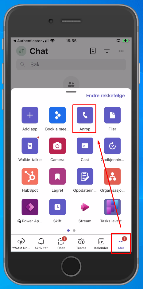 To log in to Phonero Bedriftsnett, you need your Teams Voice Phone number. You find this in Teams: Click "More", click the phone,