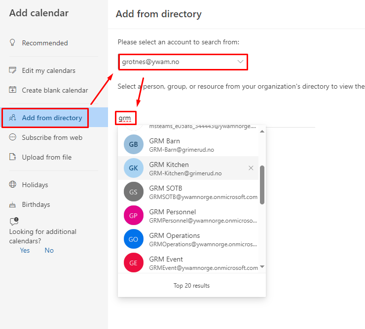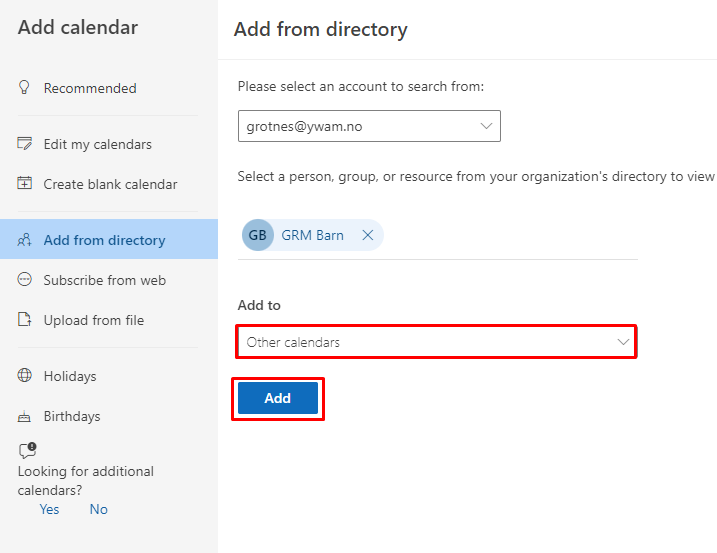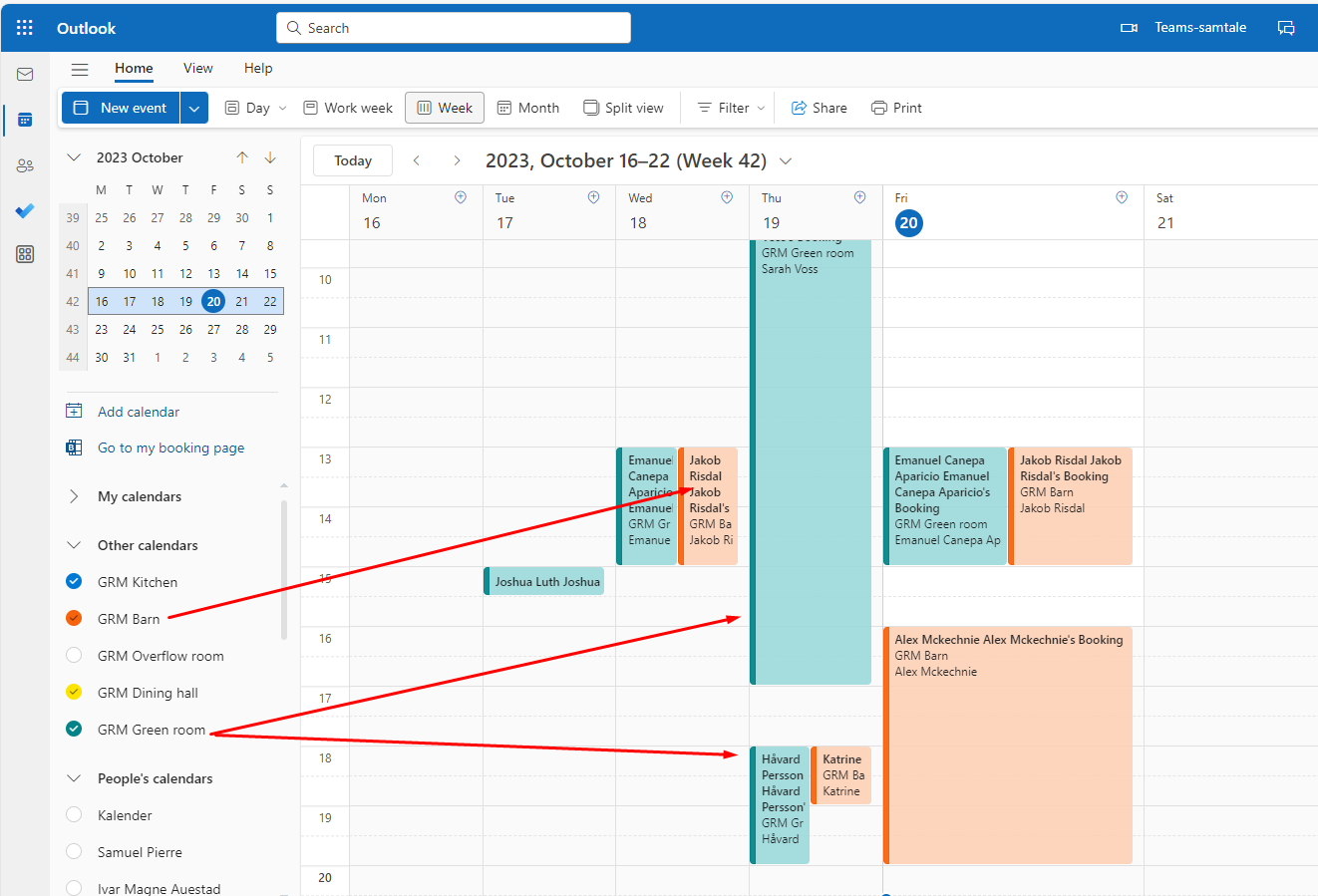 You will now see many calendars in your "Other"-list. Tick the calendars you want to see. They are color coded, so you can see which room is booked by whom.