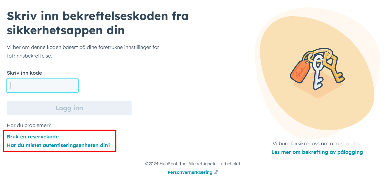 The preferred method is to use the first link: "Bruk en reservekode" / "Use a backup code". This is to use one of the 10 codes you got when activating 2-factor.