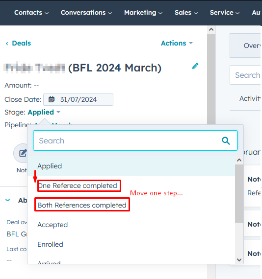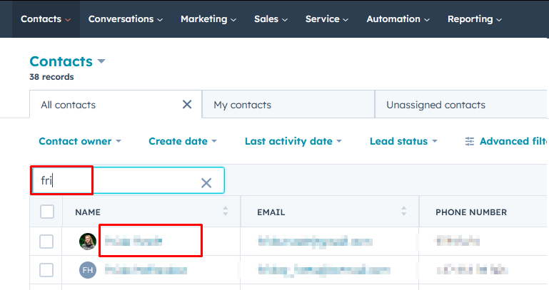 6. Find the Applicant under Contacts. Use the search bar. Click the name of the Applicant.
