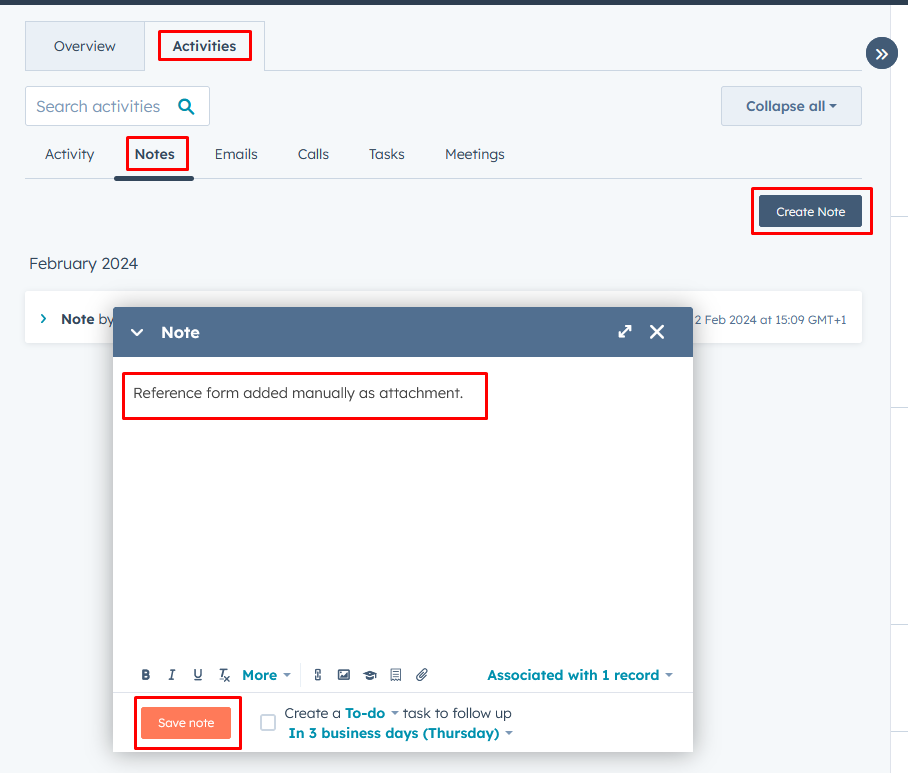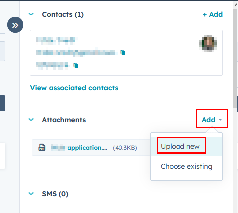 9. Upload the Reference form by clicking Add under Attachments on the right side of the Deal view.