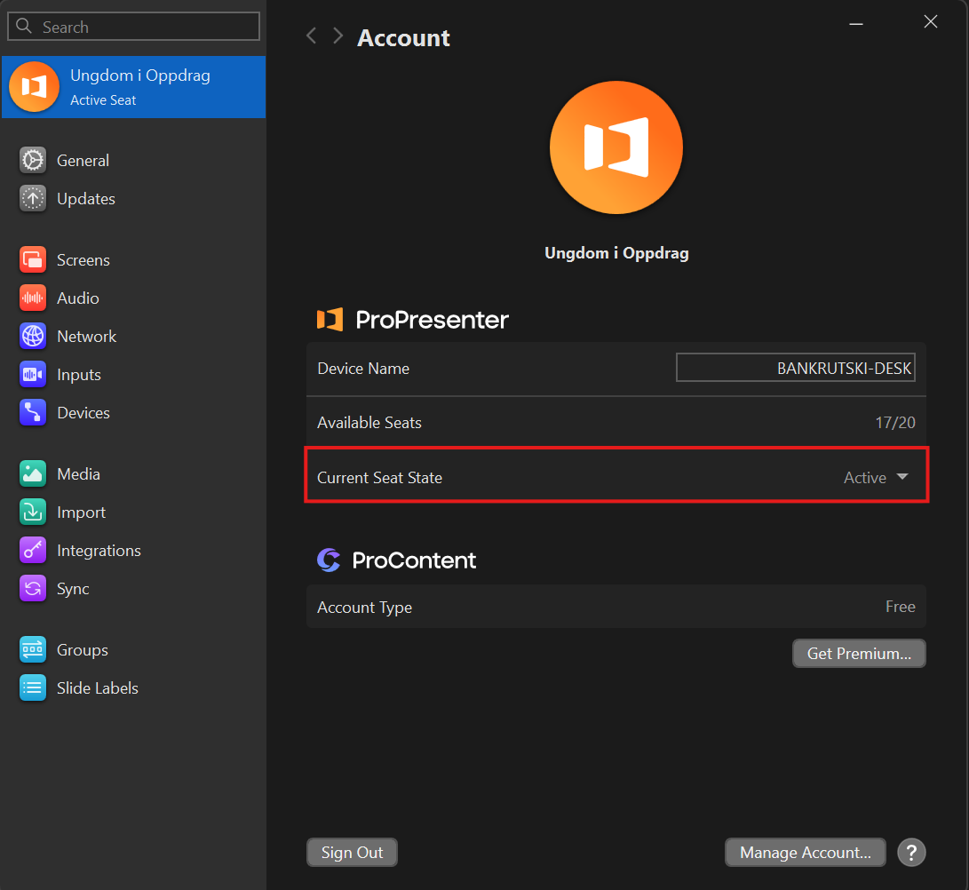 When a presentation room won't not be used for a week or more, you should deactivate the ProPresenter seat.
