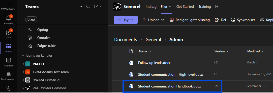 Teams team NAT YWAM Common -> Documents -> General -> Admin -> "Student communication Handbook"