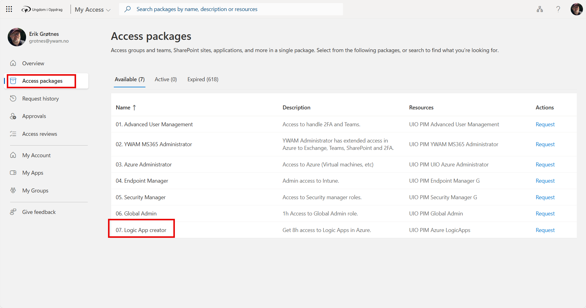 Get your access. Go to https://myaccess.microsoft.com