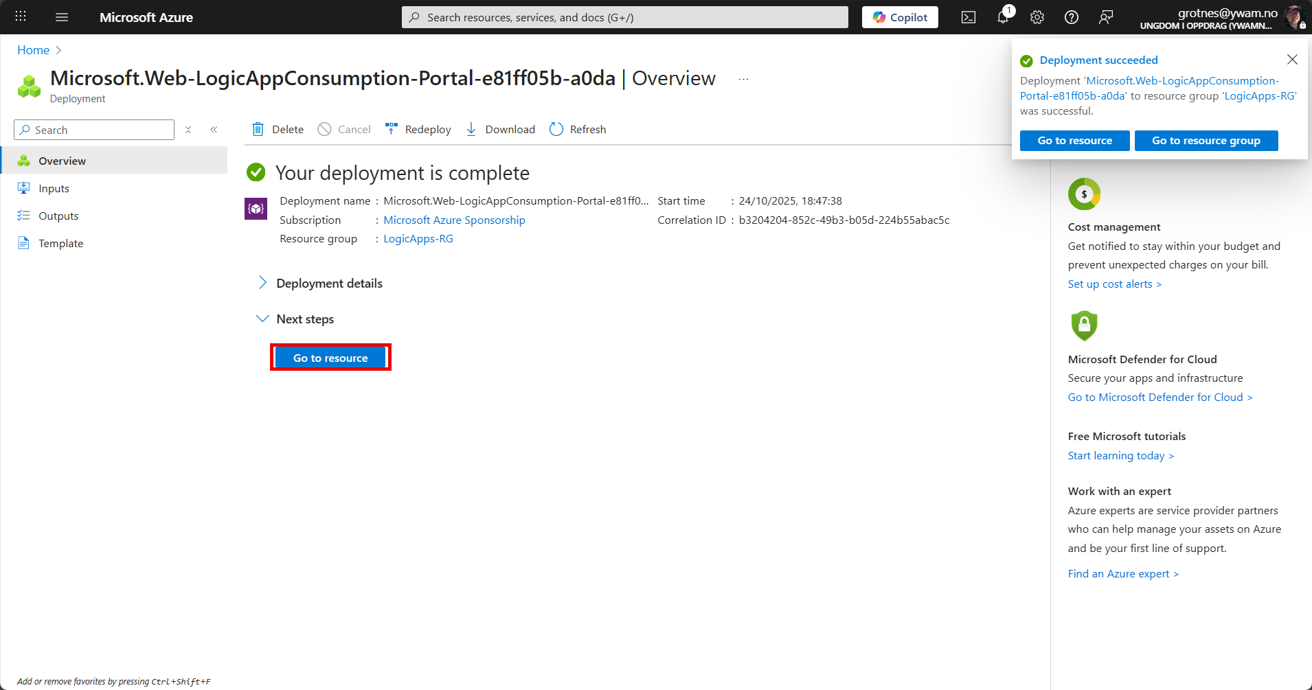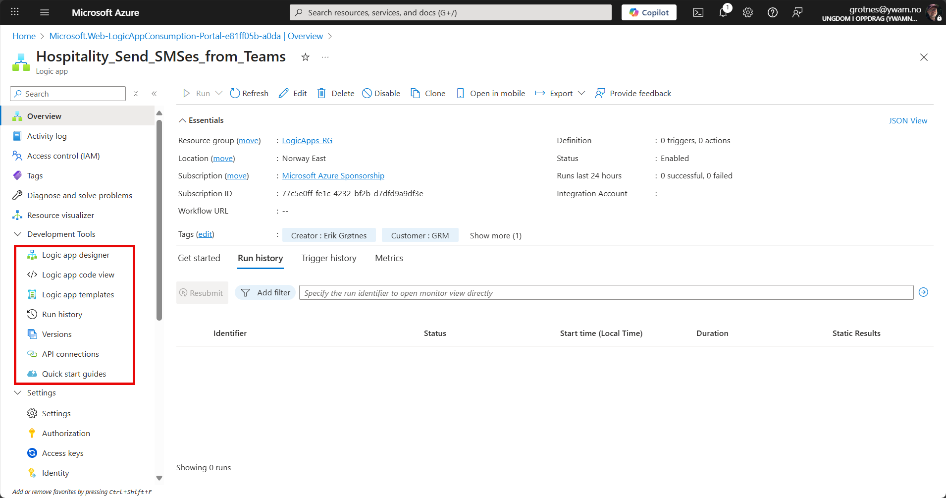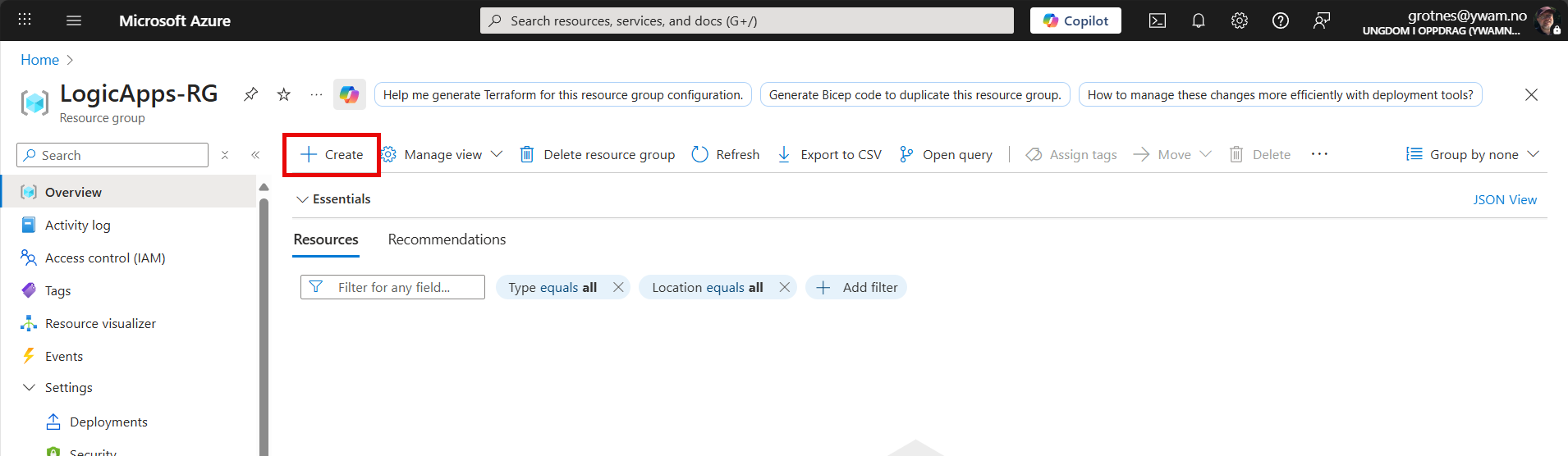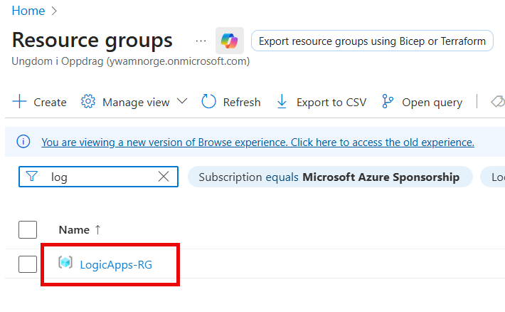 Open the Resource Group for Logic Apps.