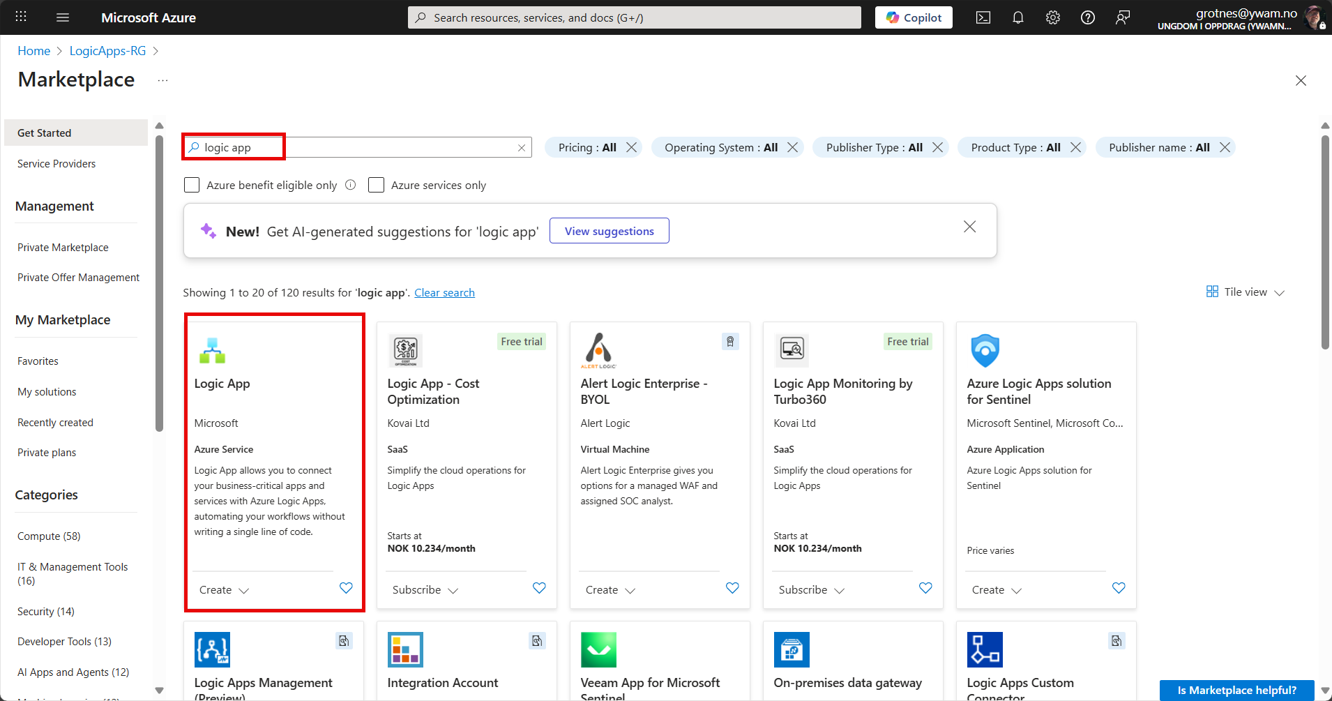 Select the Resource Group LogicApps-RG