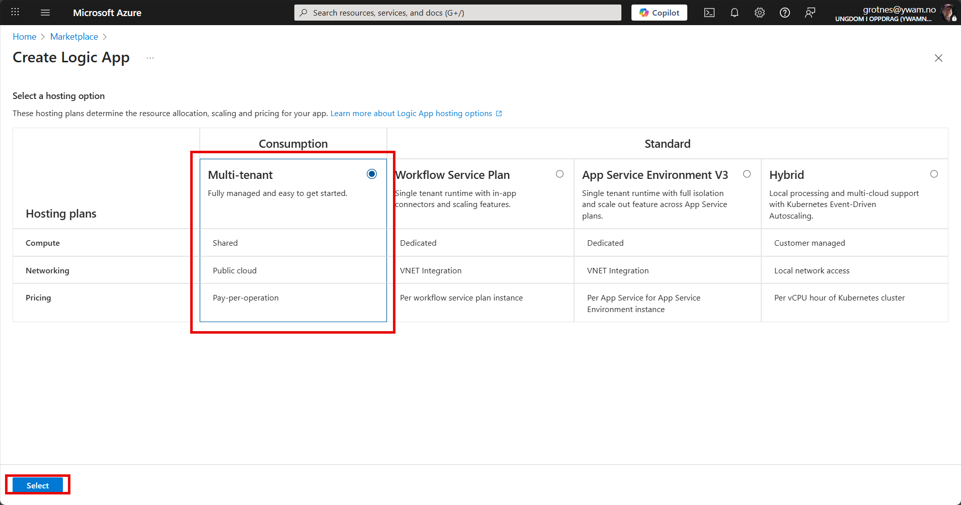Select to Create a new Logic App.