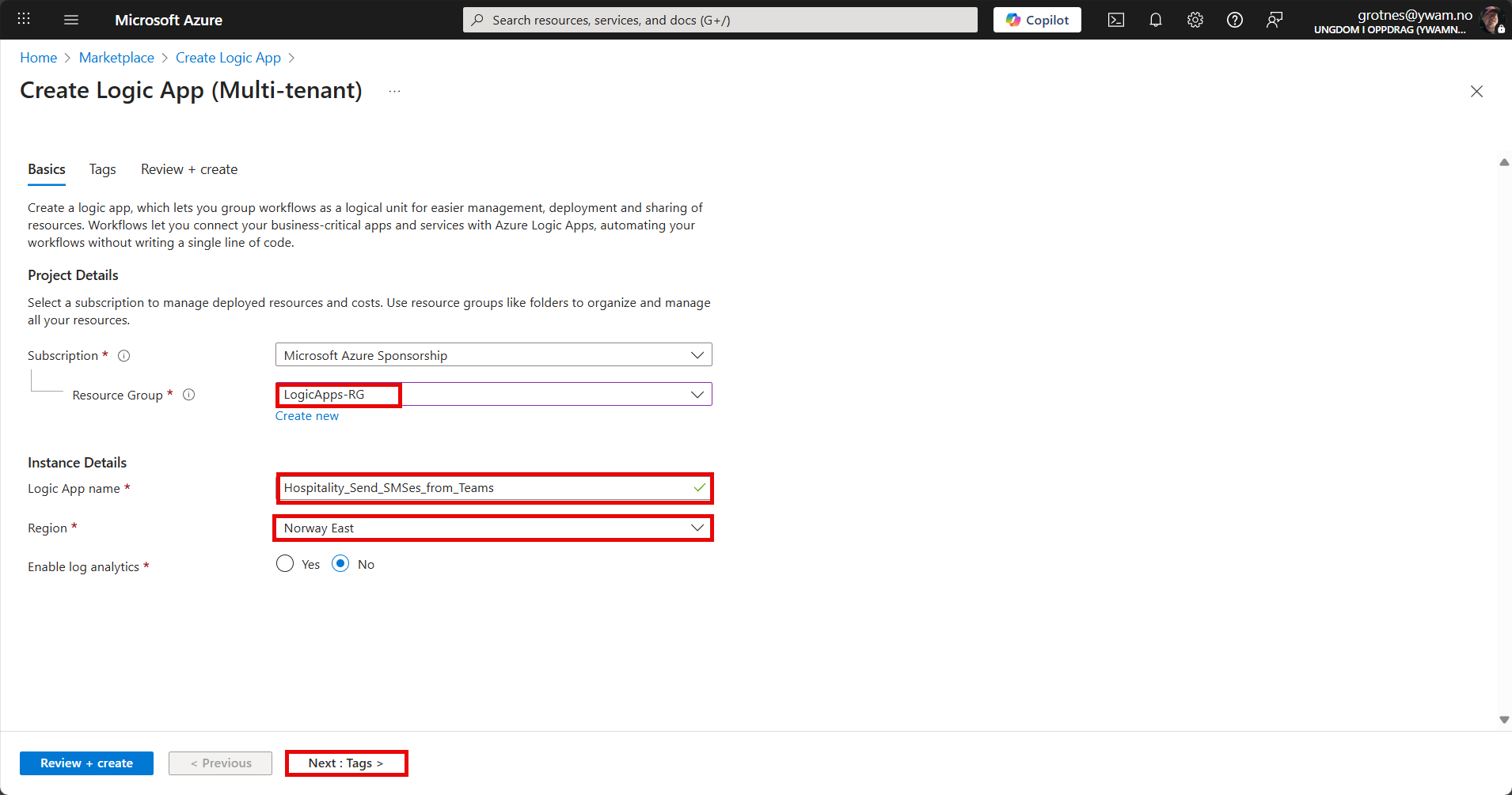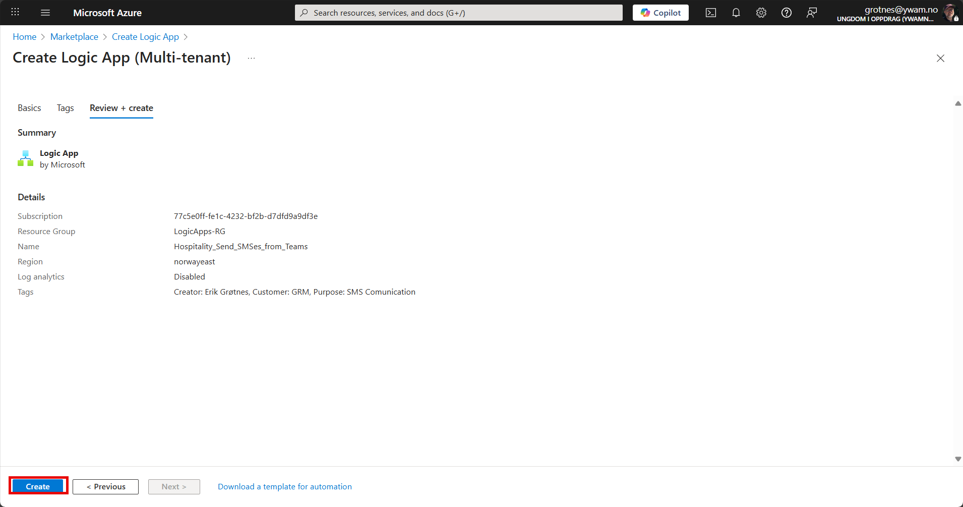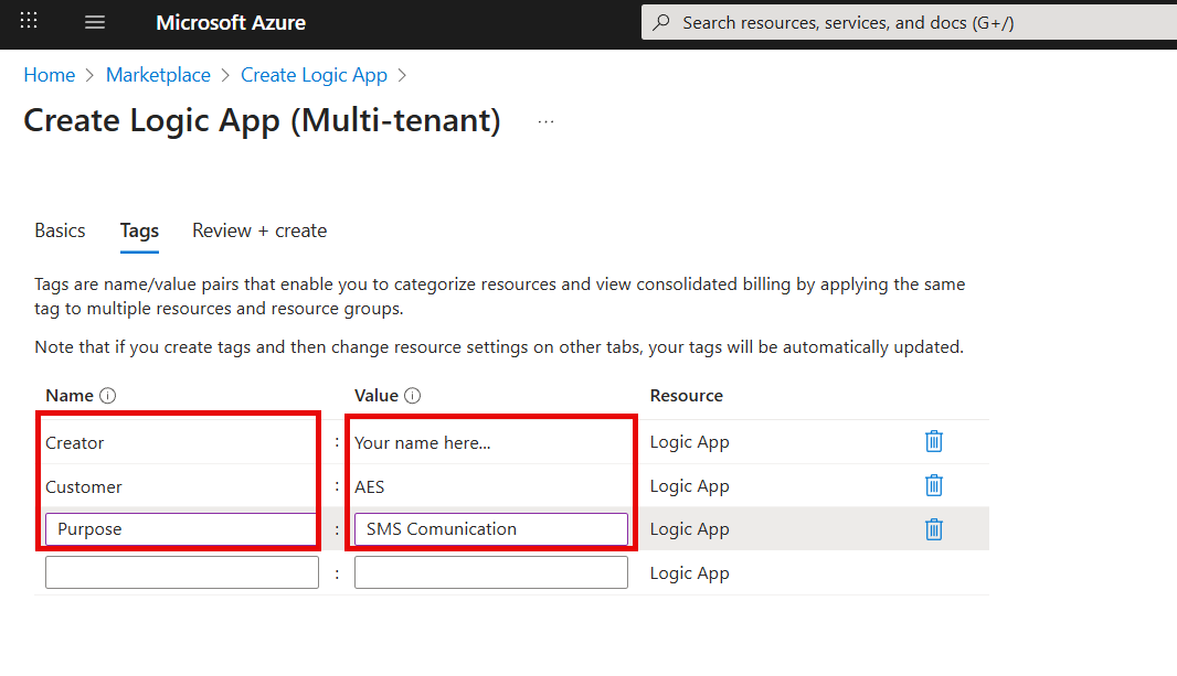 | Creator | Your name so that it is easy to figure out who to ask questions about this Logic App. |